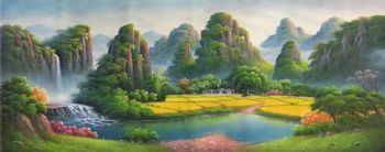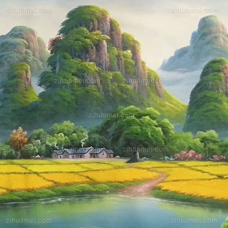 安居乐业山川风景油画纯手绘风景聚宝盆油画 手绘