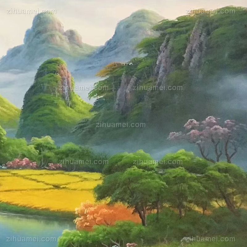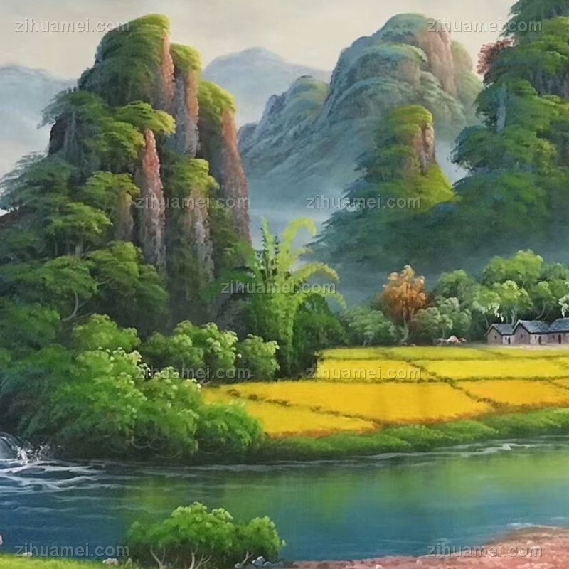 金山系列风景油画纯手绘油画装饰画实木外框 手绘