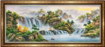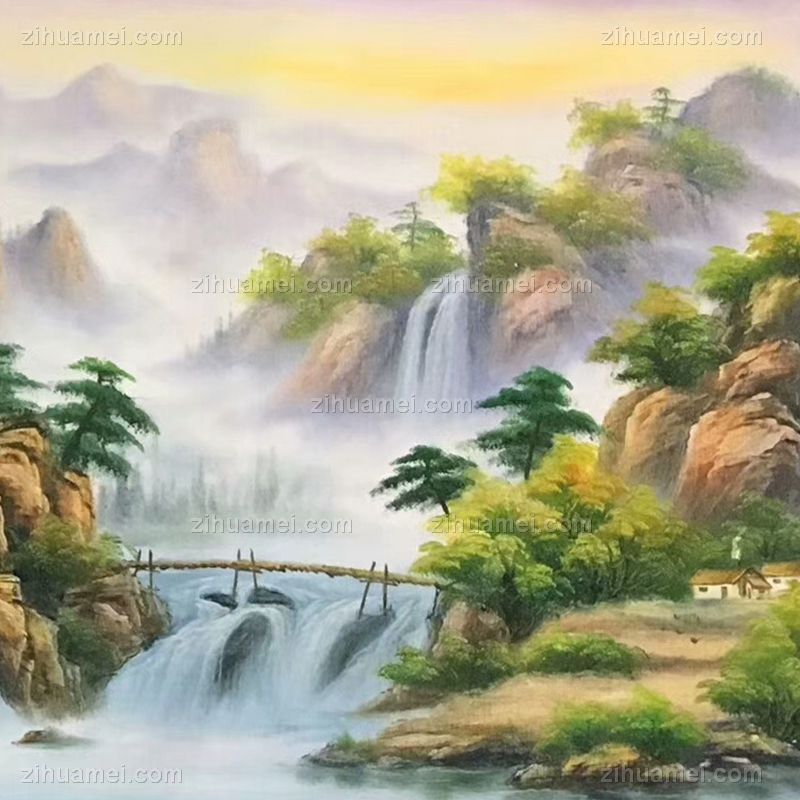 纯手绘风景油画山水画聚宝盆风景油画实木画框 手绘