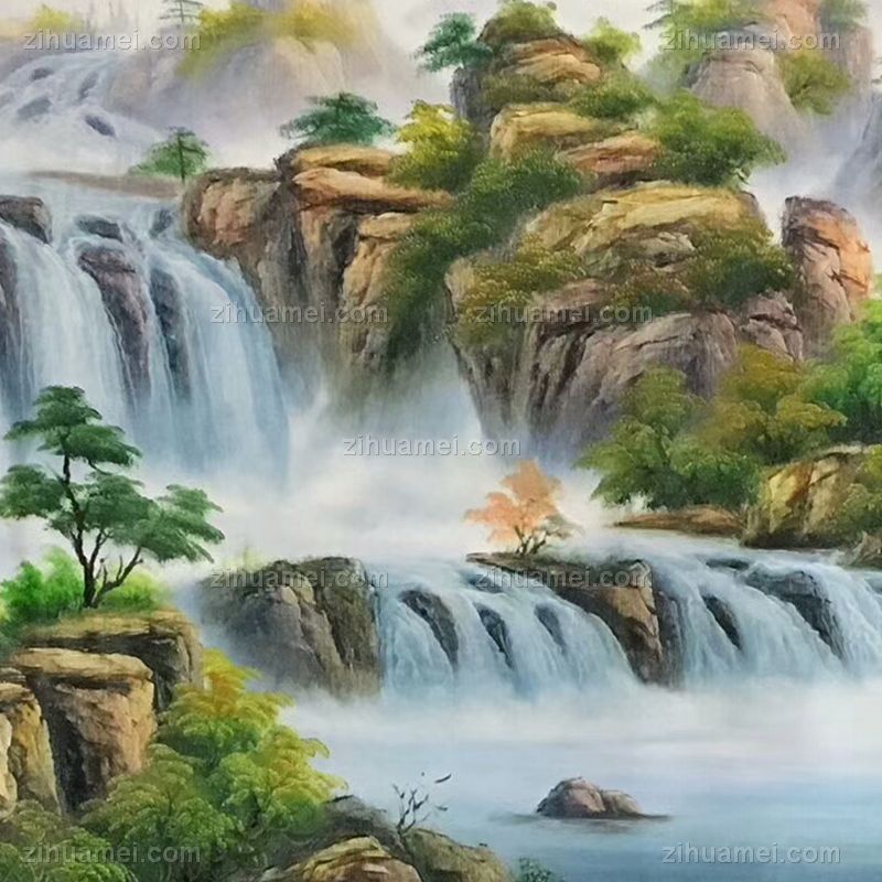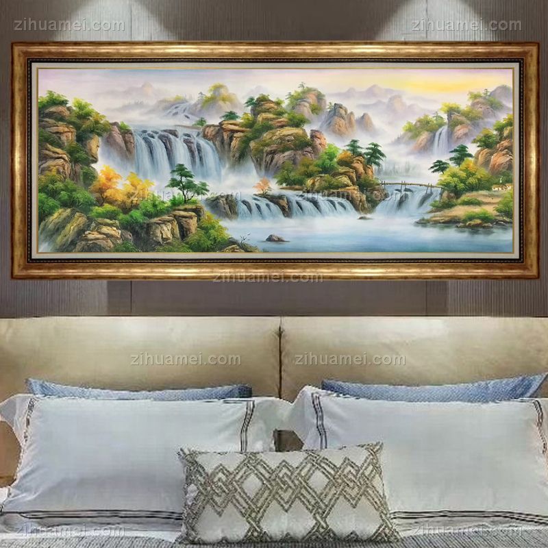 • 聚宝盆油画纯手绘中式欧式山水风景客厅装饰画办公室壁画风水挂画