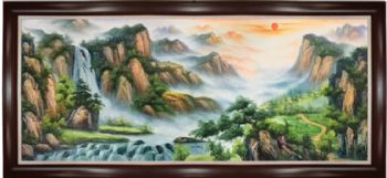 纯手绘风景油画山水画聚宝盆风景油画实木画框 手绘