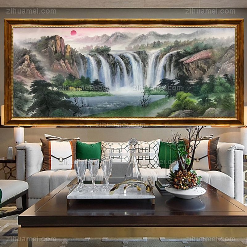 • 聚宝盆油画纯手绘中式欧式山水风景客厅装饰画办公室壁画风水挂画
