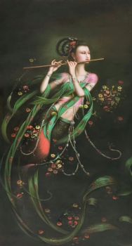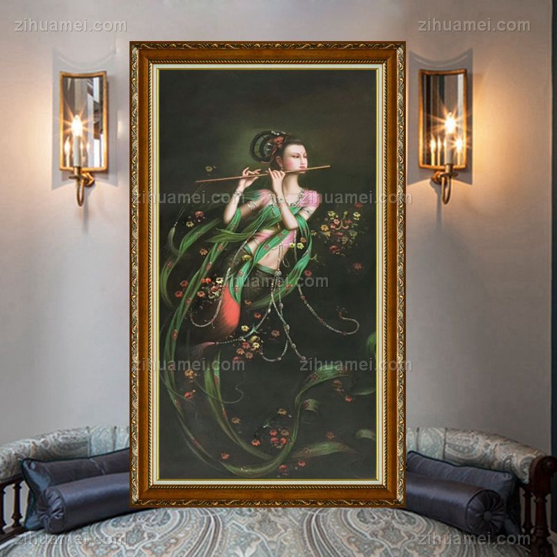 • 新中式客厅玄关装饰画敦煌壁飞天观音手绘油画