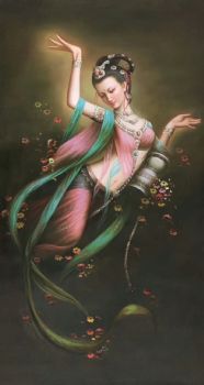 中式敦煌舞蹈美女人物油画纯手绘人物油画 手绘