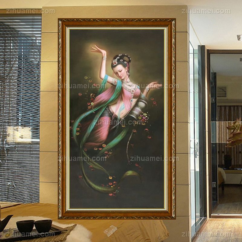 • 新中式客厅玄关装饰画敦煌壁飞天观音手绘油画