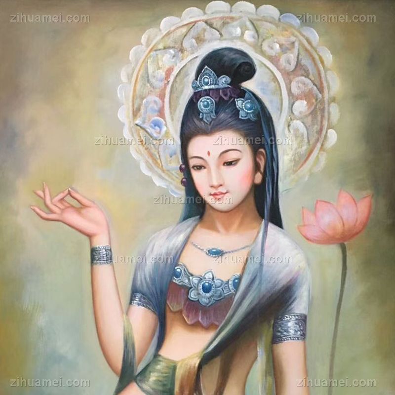 新中式人物纯手绘写实油画神话人物菩萨油画 手绘