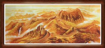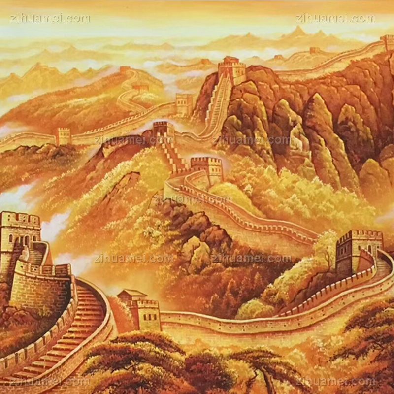 基业长青新中式手绘长城风景油画实木画框 手绘