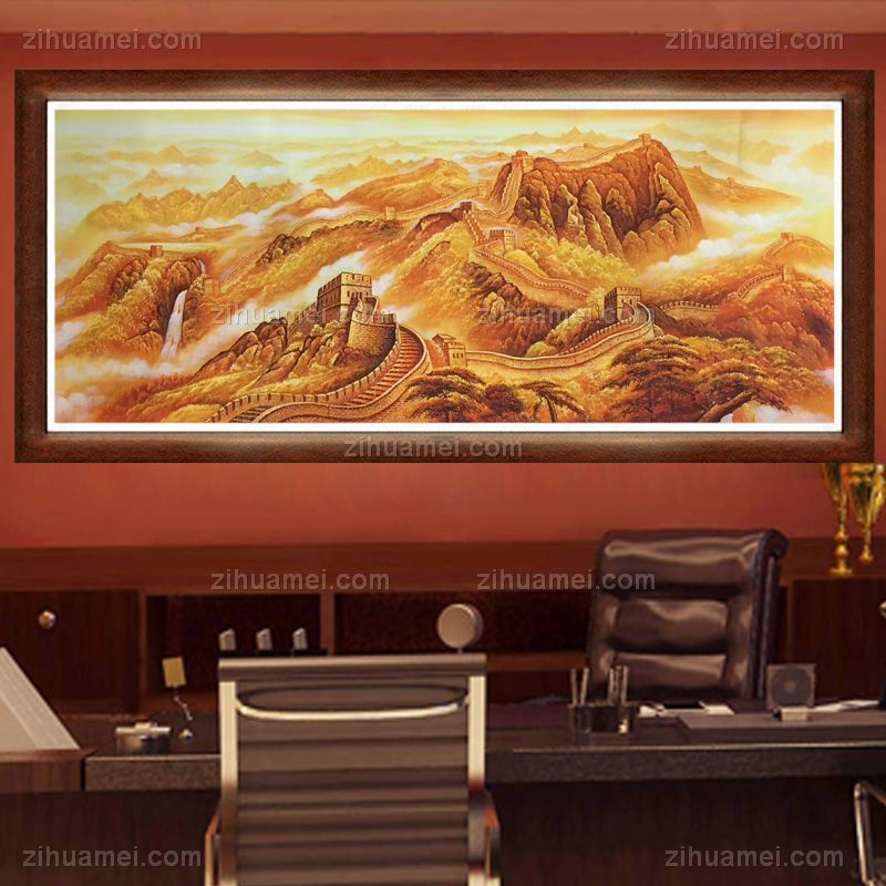 • 中式装饰画客厅办公室书房油画纯手绘山水风景 万里长城 C
