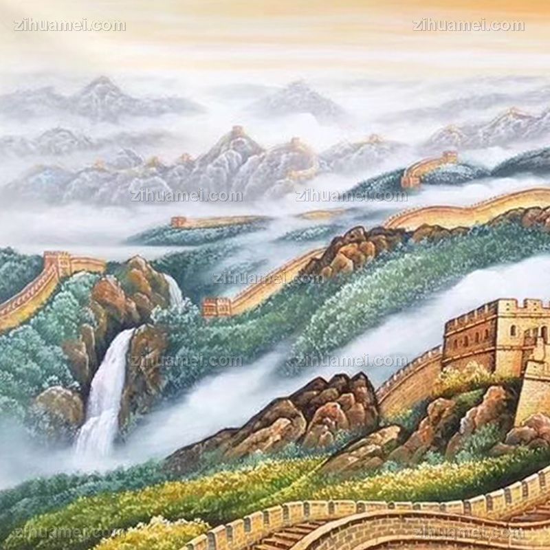 纯手绘山水风景 万里长城