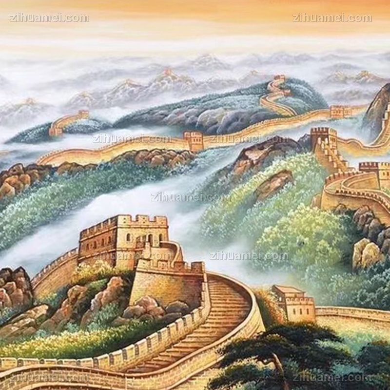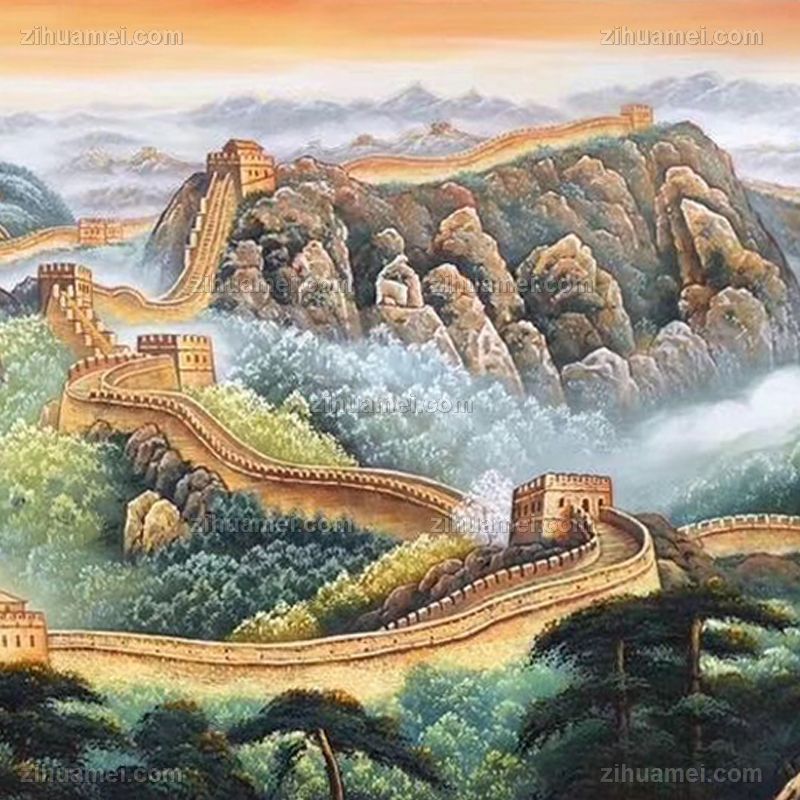 江山一条龙长鸿风景油画纯手绘长城风景油画 手绘