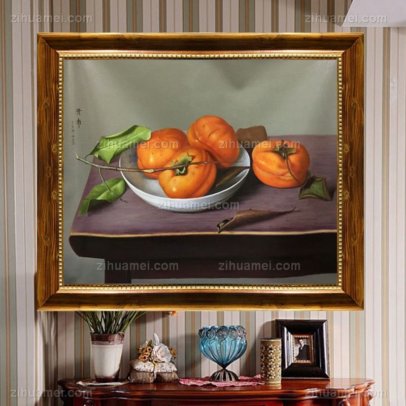 • 新中式手绘油画玄关过道挂画柿子开市精品油画超写实