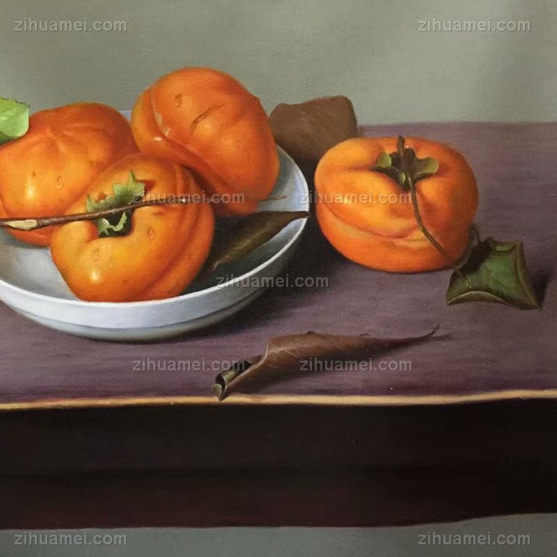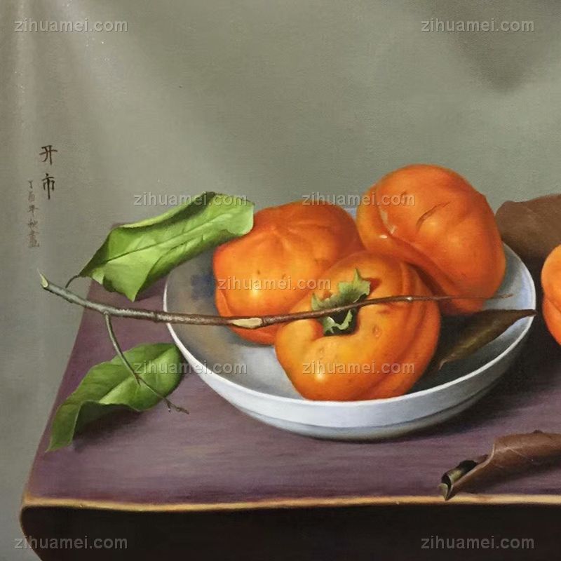 写实静物手绘油画好柿一箩框柿子图事事如意 手绘