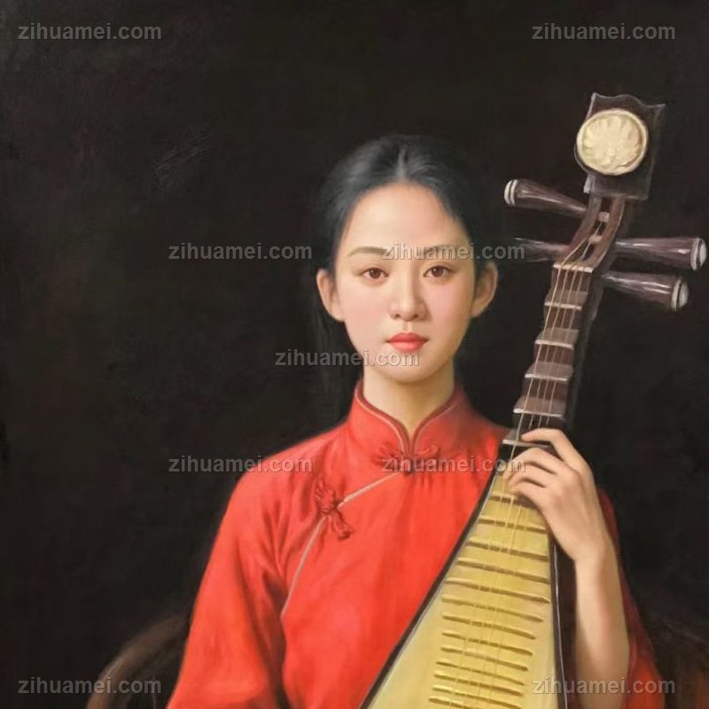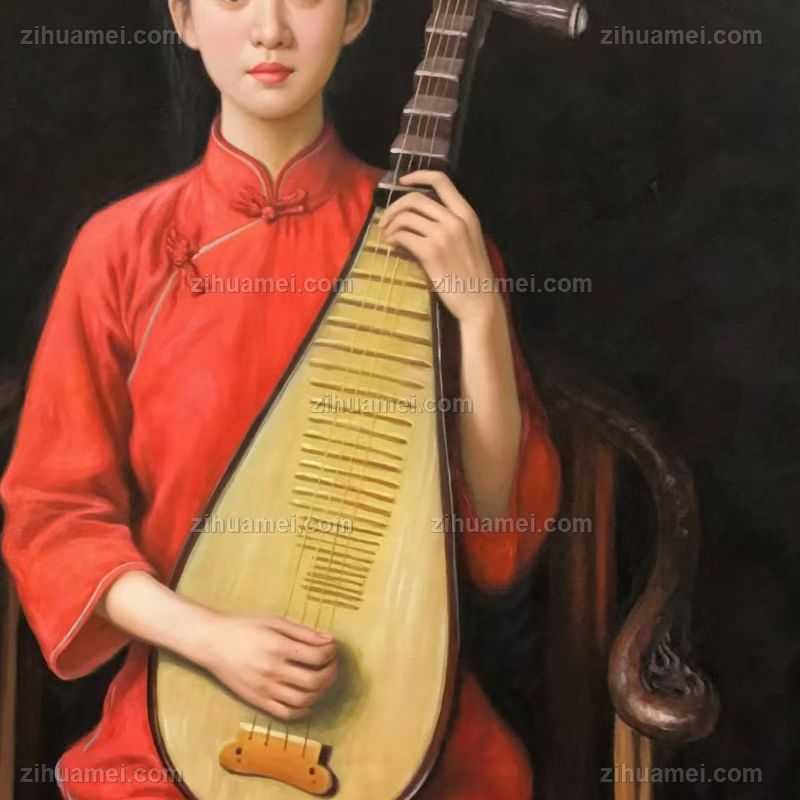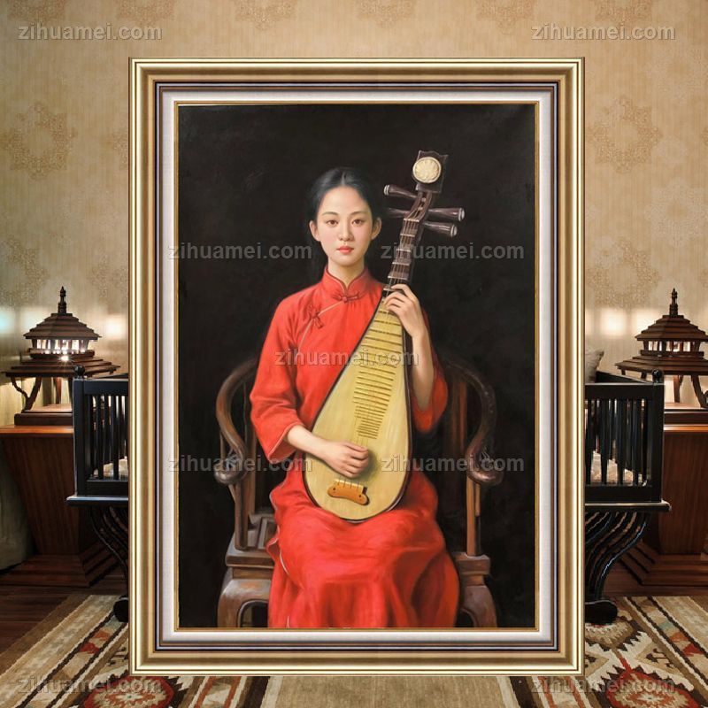 • 弹琵琶写实油画美女人体艺术油画手绘油画中式人物油画