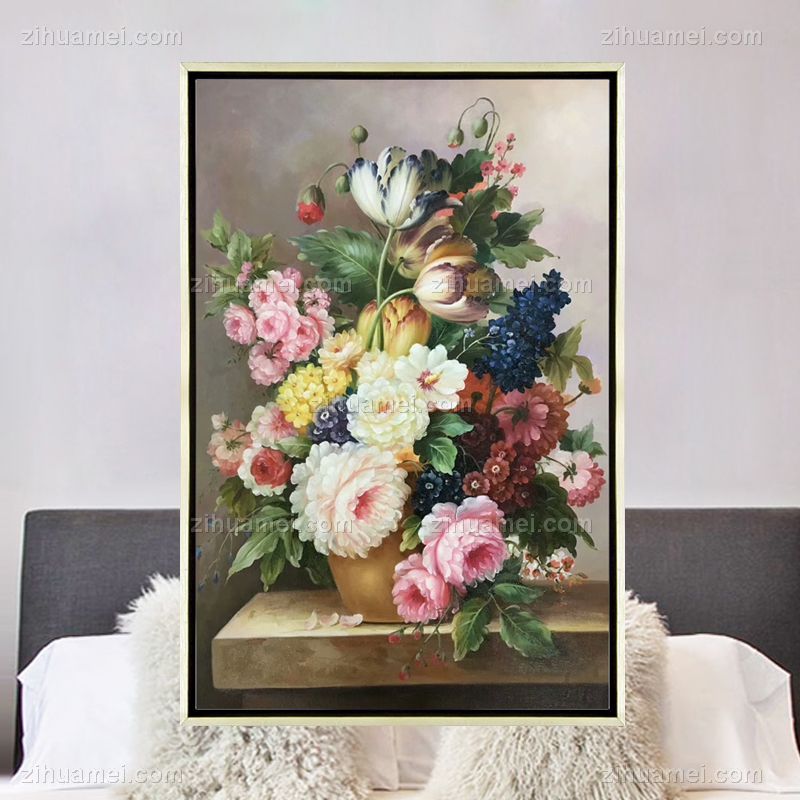 • 手绘油画欧式花卉美式壁画客厅玄关挂画