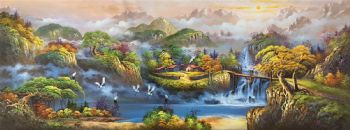 安居乐业山川风景油画纯手绘风景聚宝盆油画 手绘