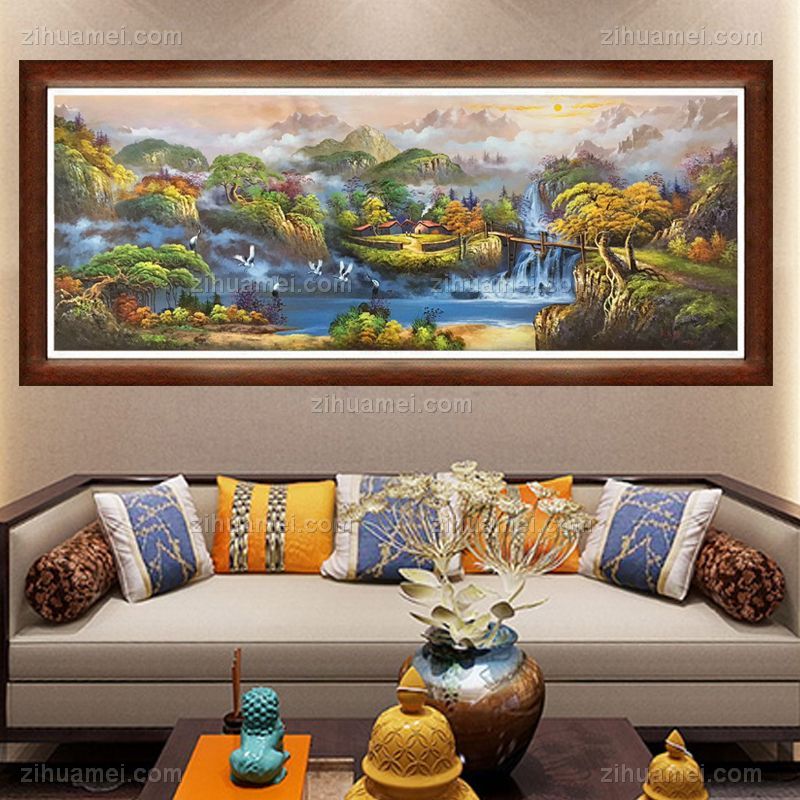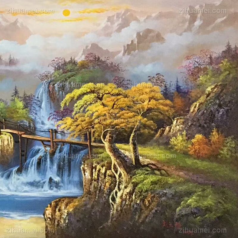 纯手绘风景油画山水画聚宝盆风景油画实木画框 手绘