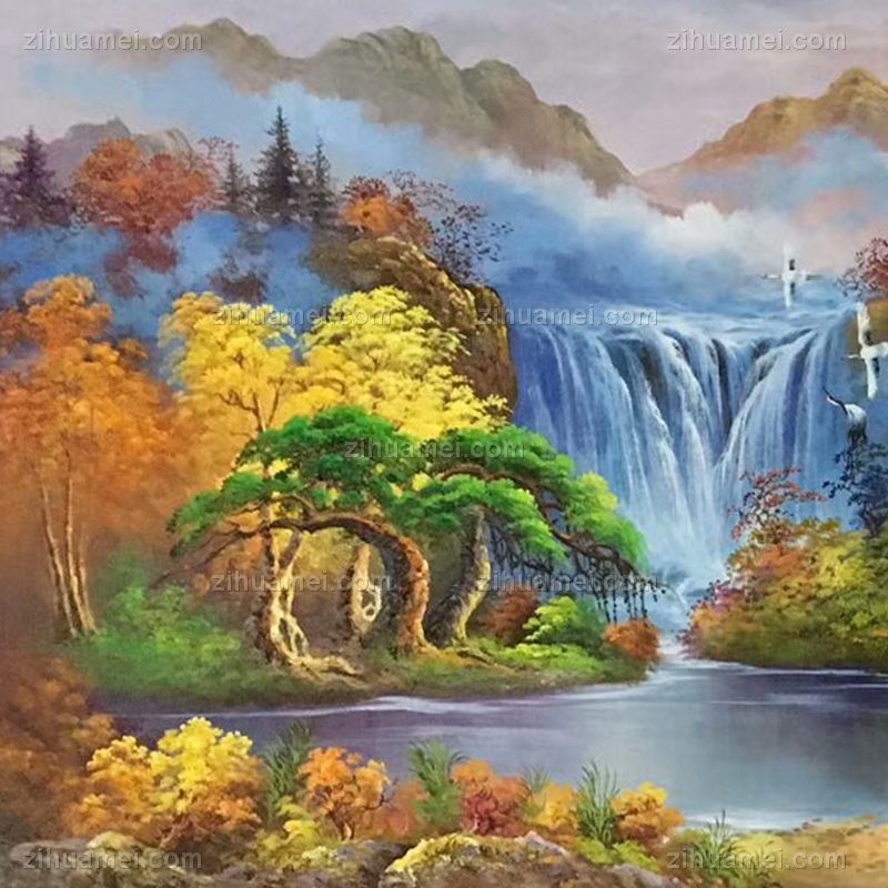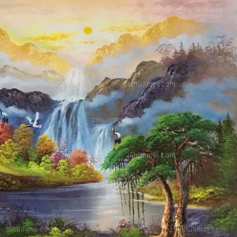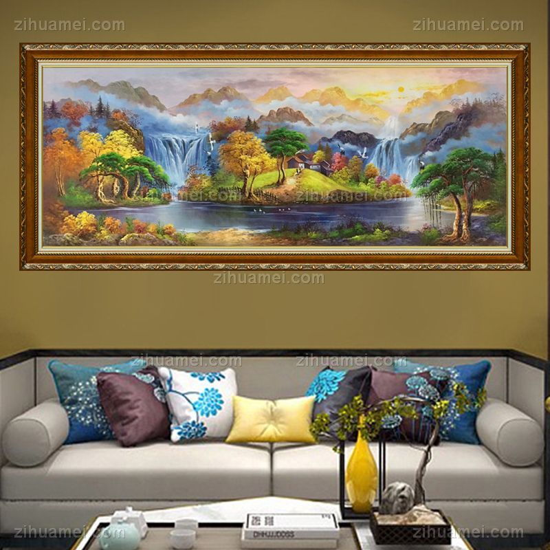 纯手绘风景油画山水画聚宝盆风景油画实木画框 手绘