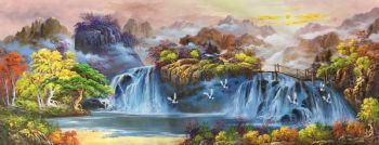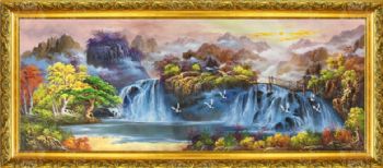 纯手绘风景油画山水画聚宝盆风景油画实木画框 手绘