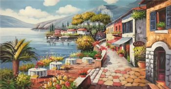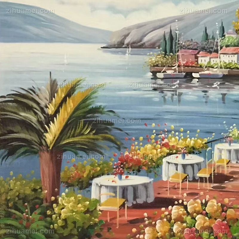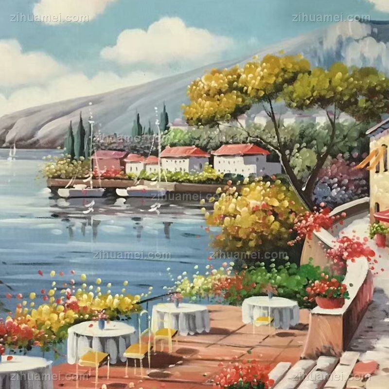 纯手绘欧式地中海风景油画