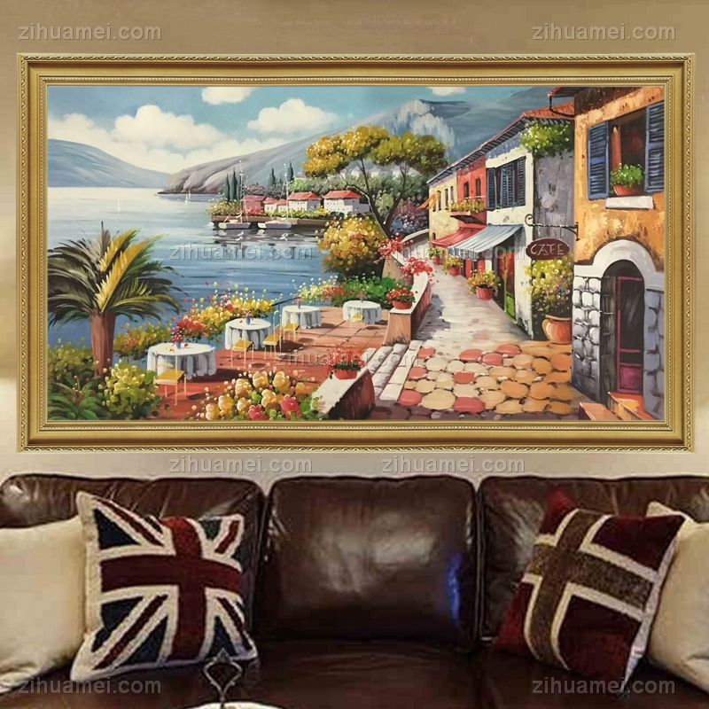 • 纯手绘欧式地中海风景油画客厅装饰画沙发背景墙挂画卧室餐厅壁画