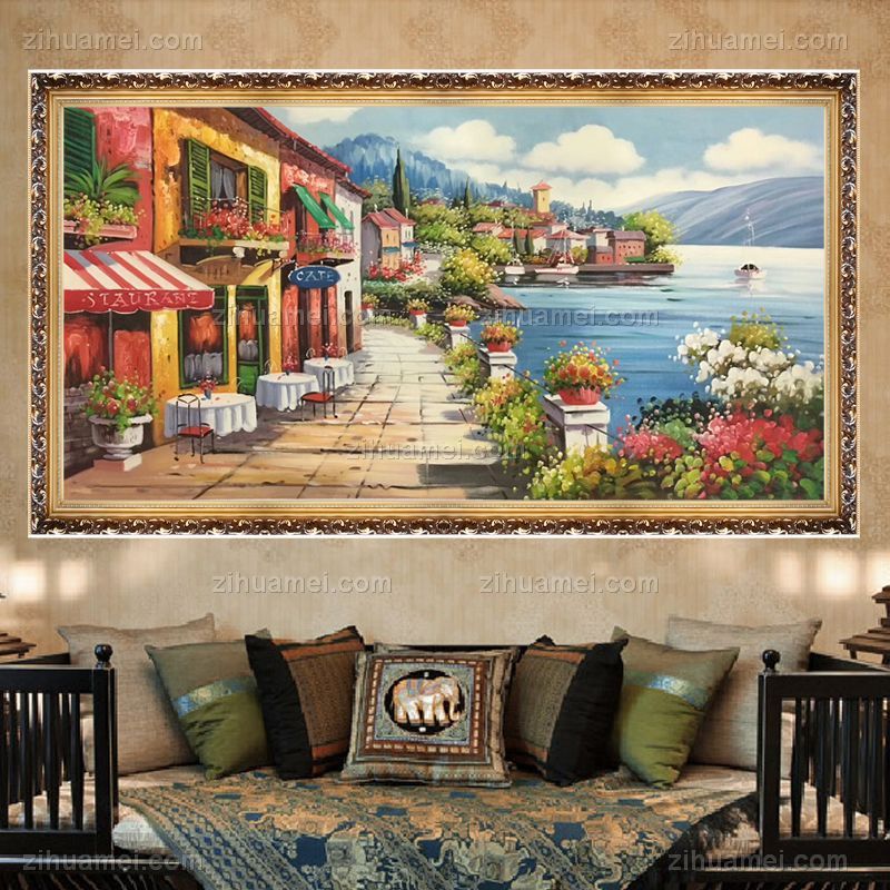 • 纯手绘欧式地中海风景油画客厅装饰画沙发背景墙挂画卧室餐厅壁画