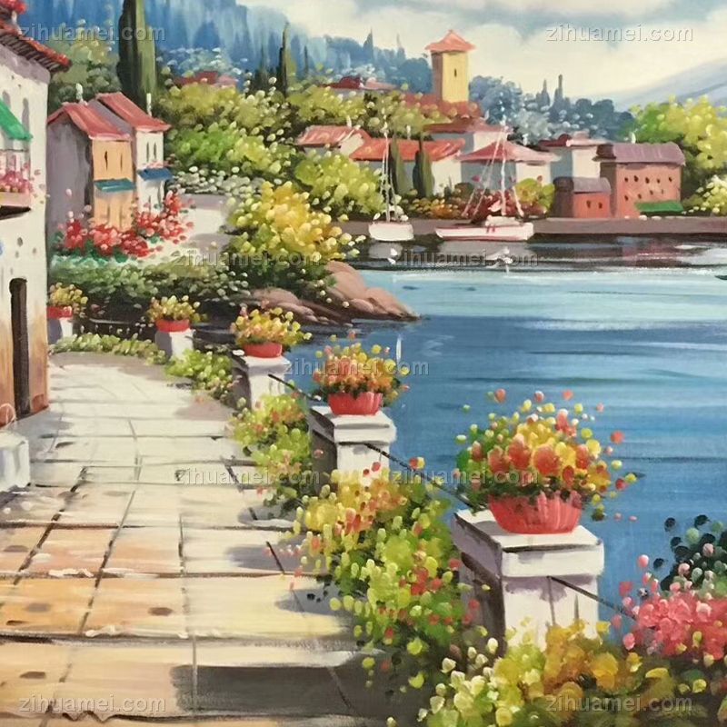 纯手绘欧式地中海风景油画