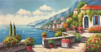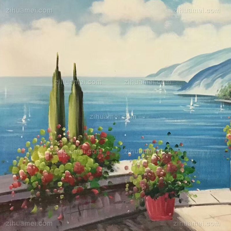 • 纯手绘欧式地中海风景油画客厅装饰画沙发背景墙挂画卧室餐厅壁画
