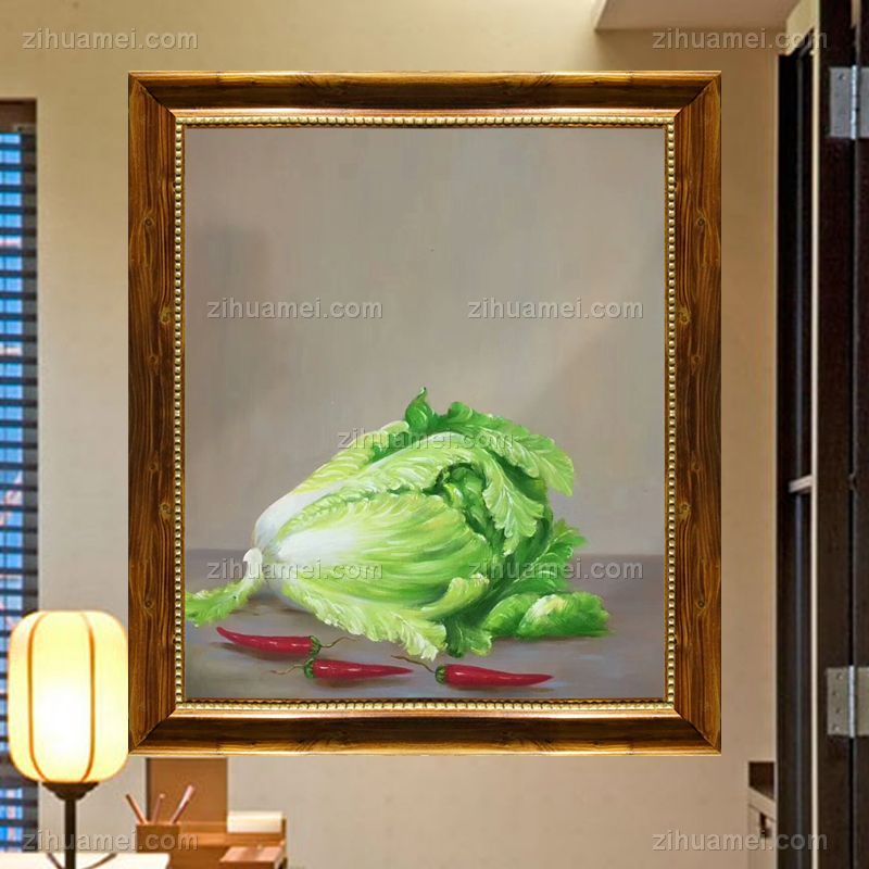 • 纯手绘静物油画现代田园中式餐厅装饰画客厅挂画白菜