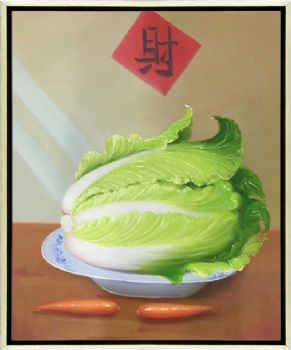 精品超写实静物油画白菜百财新中式手绘油画 手绘