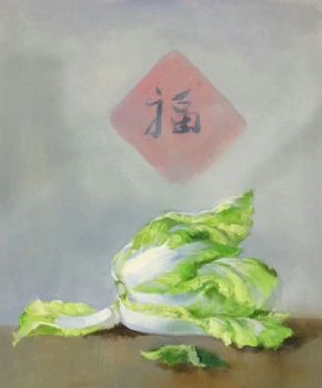 精品超写实静物油画白菜百财新中式手绘油画 手绘