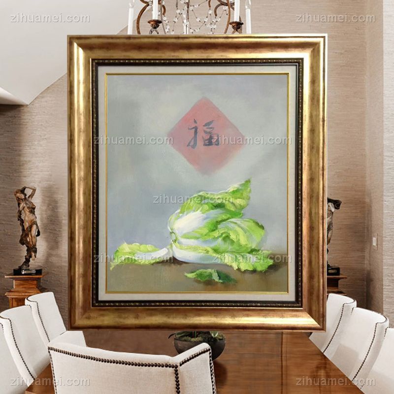 • 纯手绘静物油画现代田园中式餐厅装饰画客厅挂画白菜