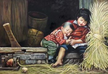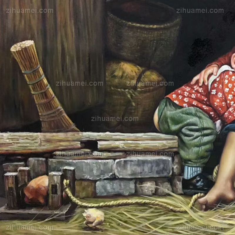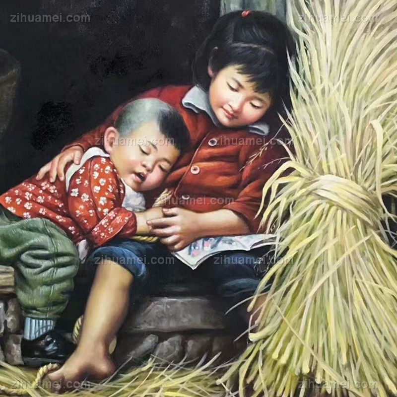• 纯手工手绘油画中式油画客厅壁炉玄关装饰挂画姐弟情乡村风景