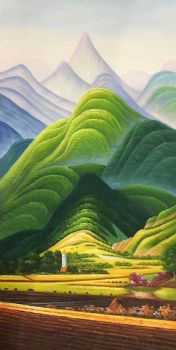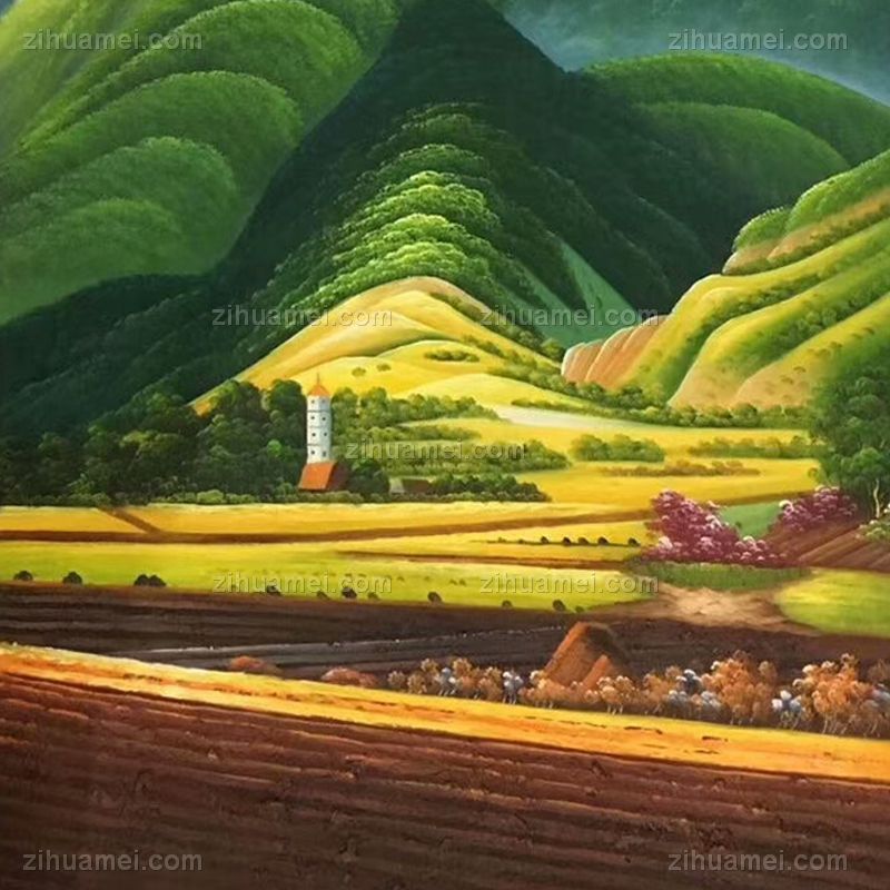 安居乐业山川风景油画纯手绘风景聚宝盆油画 手绘