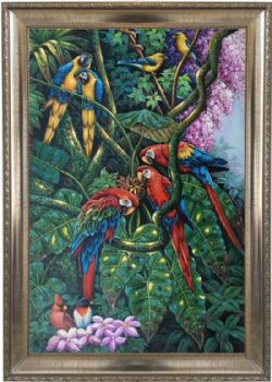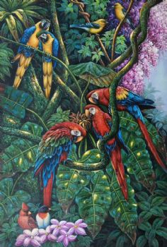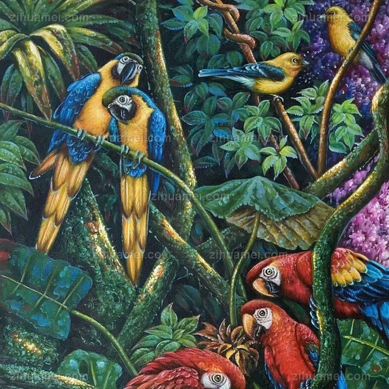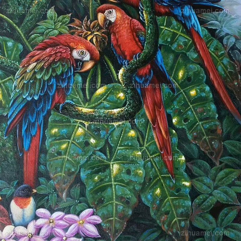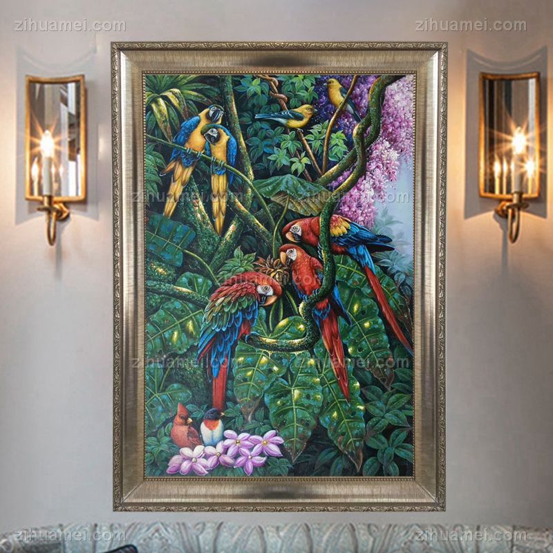 • 热带雨林风情手绘油画客厅玄关装饰画餐厅挂画里约大冒险金刚鹦鹉