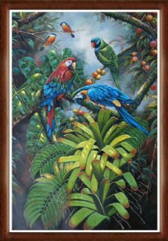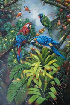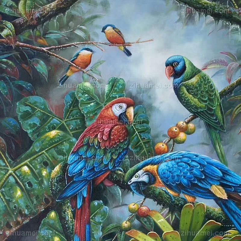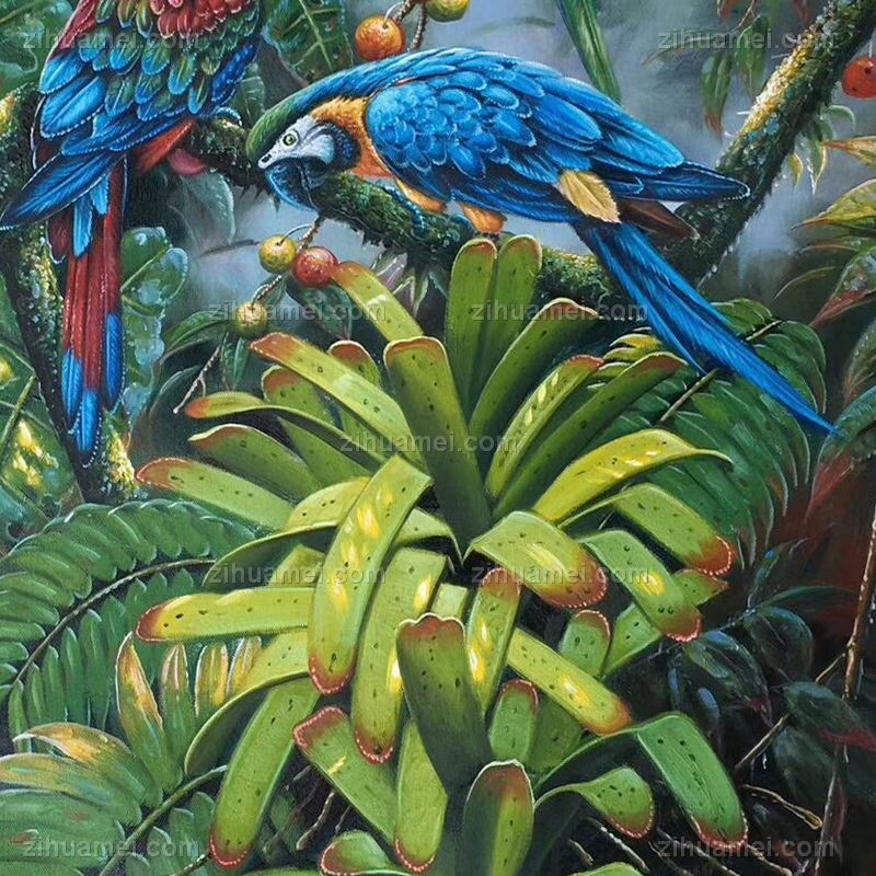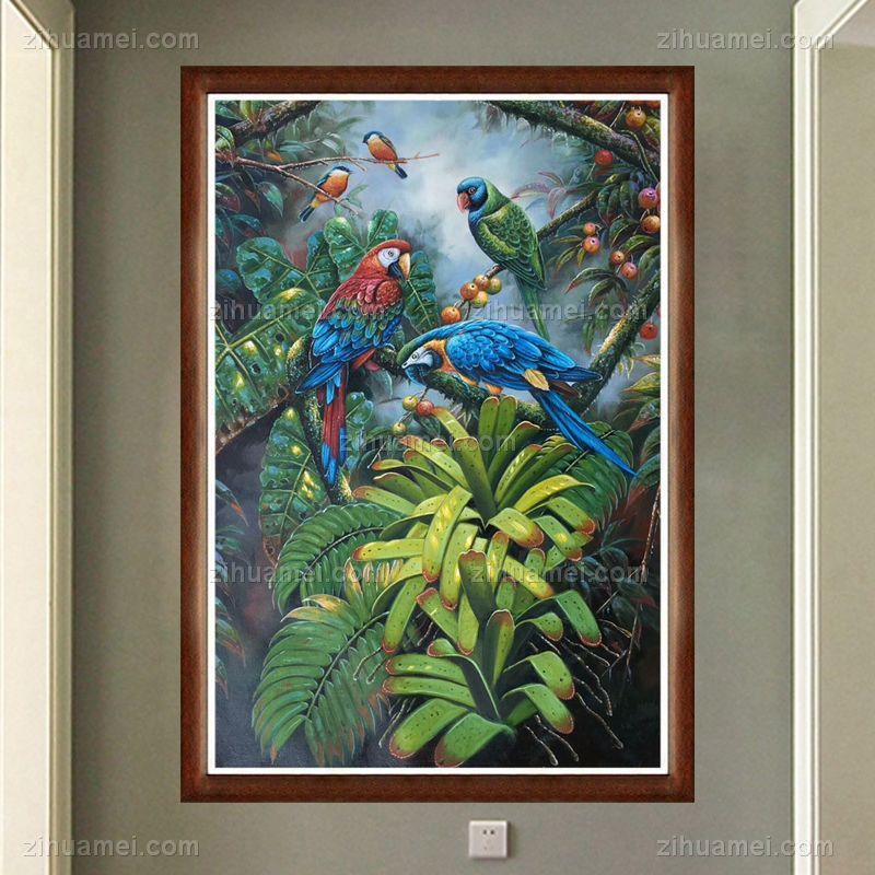 • 热带雨林风情手绘油画客厅玄关装饰画餐厅挂画里约大冒险金刚鹦鹉