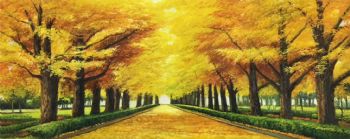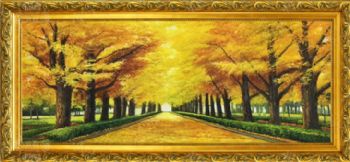 黄金大道 一片金黄 中式油画