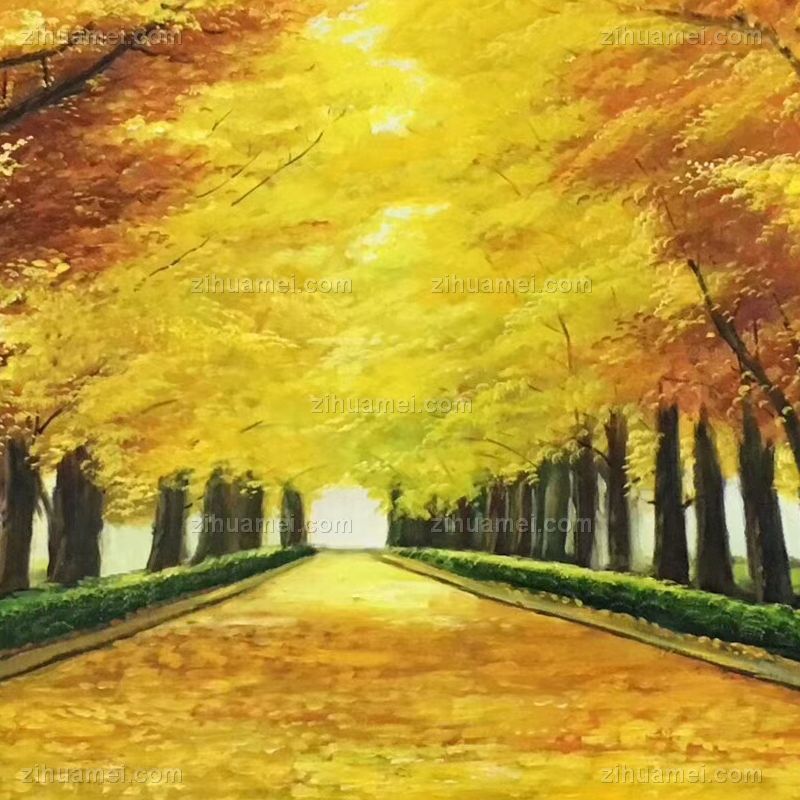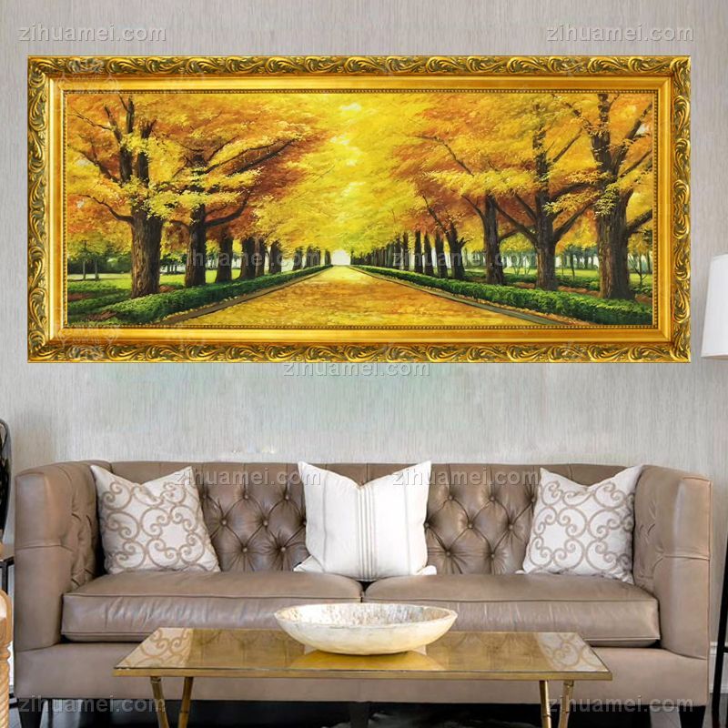 • 纯手绘手工 黄金大道 一片金黄 中式油画 家庭挂画 酒店挂画 办公室挂画