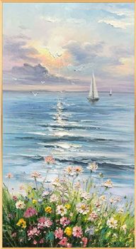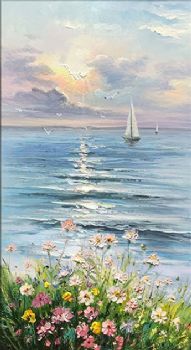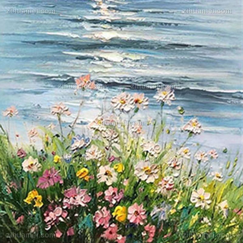 纯手绘一帆风顺花海风景油画