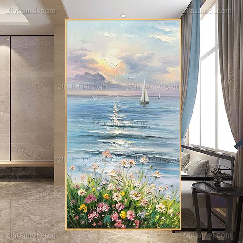 海浪风景油画纯手绘油画玄关风景油画 手绘