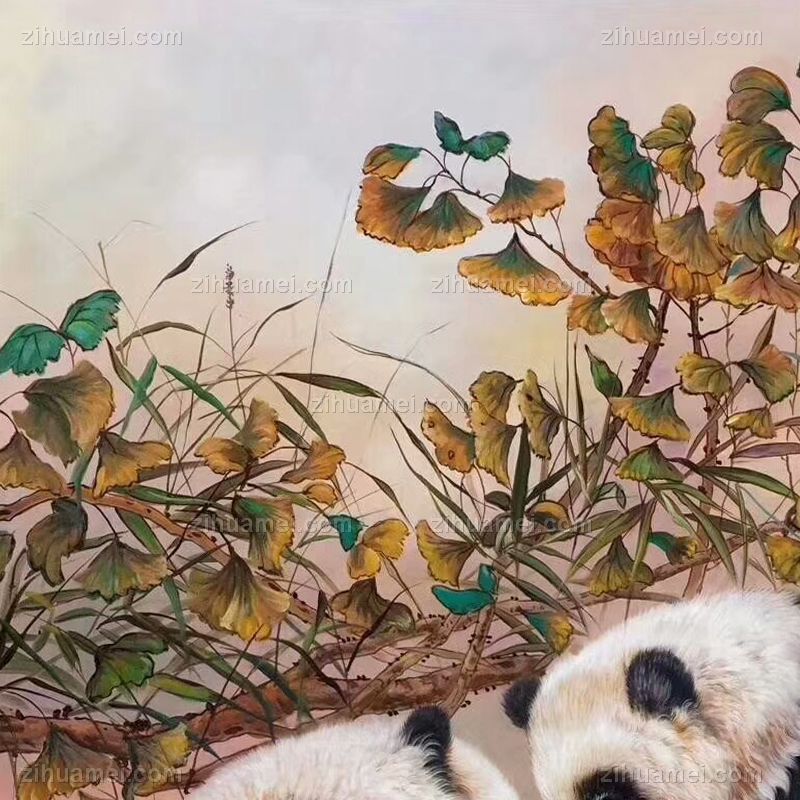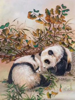 新中式动物油画纯手绘熊猫图美好动物油画 手绘