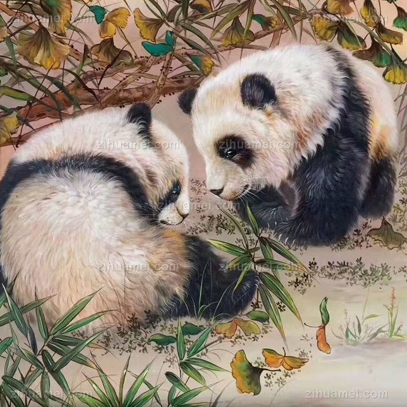 餐厅客厅动物油画纯手绘熊猫图写实油画 手绘