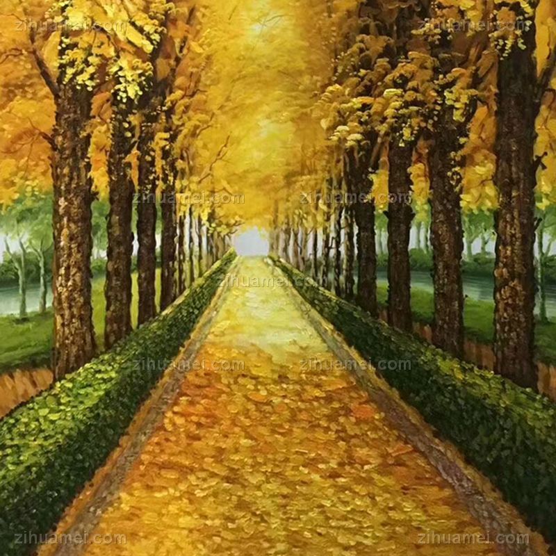 纯手绘手工 黄金大道 一片金黄