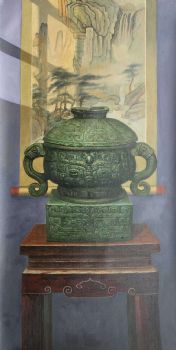 三足鼎青铜器花卉现代与经典静物写实油画 手绘