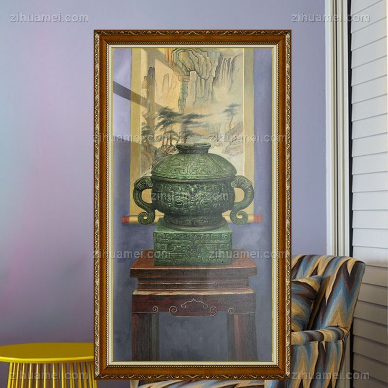古典中式客厅玄关装饰画青铜器手绘油画 手绘
