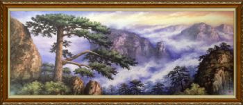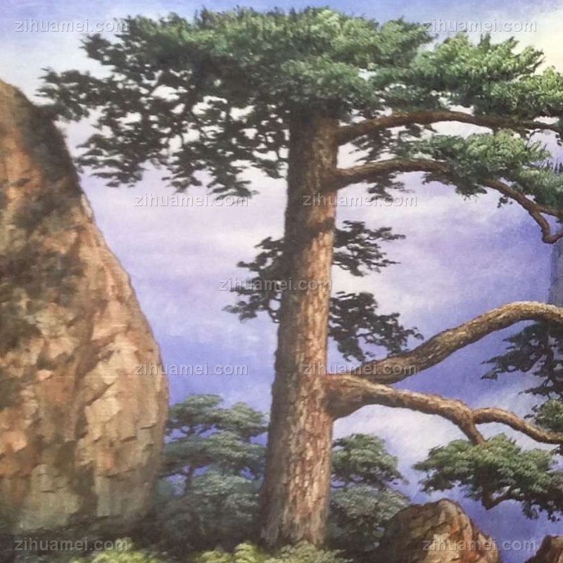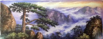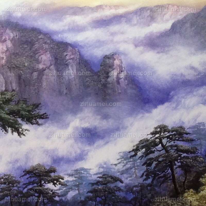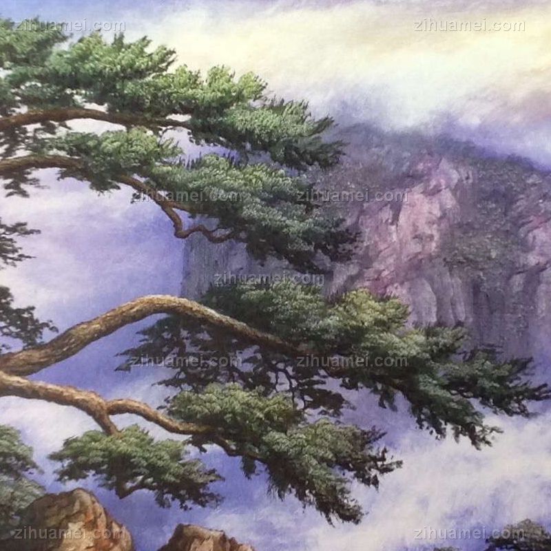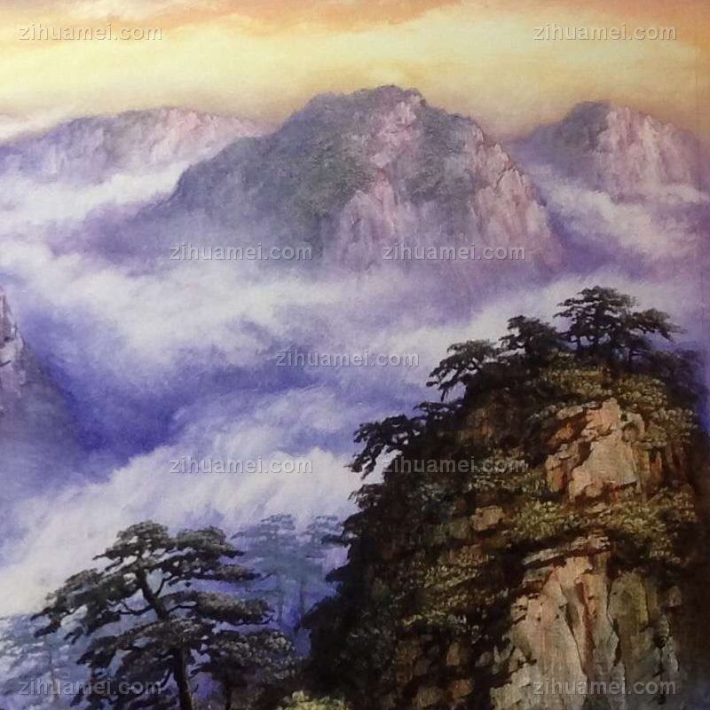 手绘油画 山水油画 高山迎客松