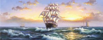 一帆风顺精品海浪帆船风景油画纯手绘油画 手绘