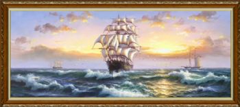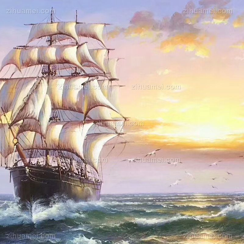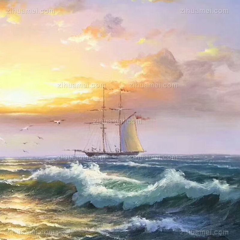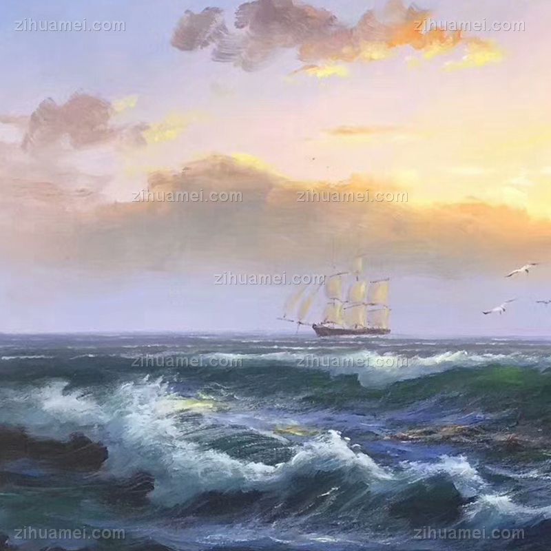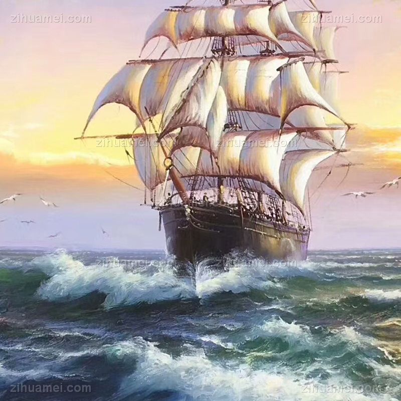 欧式海浪风景油画扬帆起航纯手绘帆船风景油画 手绘