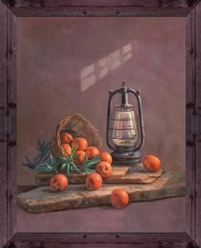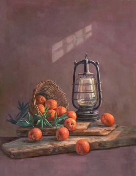 • 超写实精品油画极具收藏与观赏价值桔子与燃灯
