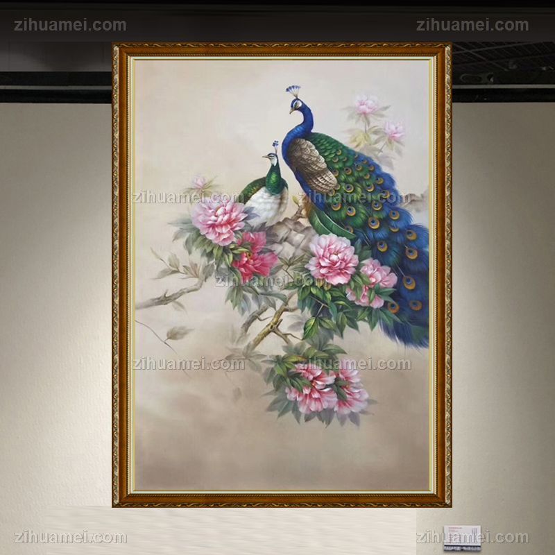 • 手绘油画孔雀富贵吉祥如意壁画横幅欧式玄关墙立体装饰画