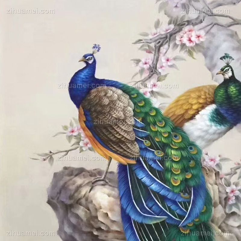 孔雀油画